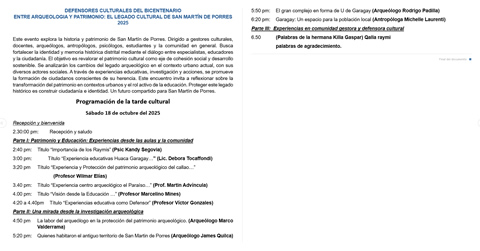 Mes de Noviembre 2025: las ubicaciones astronómicas indican la festividad del AYA MARQAY, que se celebra para recordar y homenajear a los ancestros, los antepasados que ya no están físicamente con nosotros, pero sí su legado está vivo y presente hoy. El pasado mes de Octubre se co-organizó un Rimanakuy virtual con la participación de docentes, arqueólogos e investigadores de nuestro Patrimonio Arqueológico. Asimismo se realizó diferidamente el evento de la Qoya Raymi 2025 en la Huaca Garagay con el permiso del Ministerio de Cultura. Se partició activamente en la reunión intersectorial en el sector adyacente a la Zona Monumental La Muralla de Chuquitanta, donde se exigió que las autoridades del sector (San Martín de Porres) cumplan con preservar el patrimonio material, la Muralla de Chuquitanta, que viene siendo afectada por inmobiliarias, por pobladores que viene construyendo sus viviendas muy cerca de la Zona intangible, con el permiso de no sabemos quién.